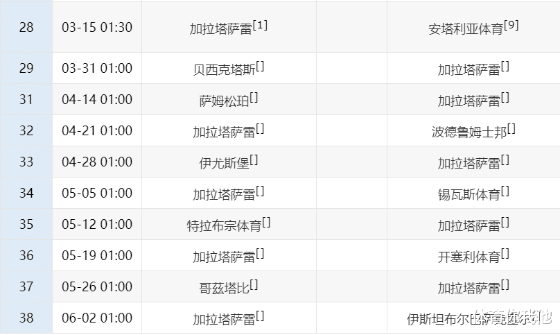 根据赛程安排,加拉塔萨雷还剩下10轮比赛(第30轮轮空),其中接下来3个客场,他们要对阵贝西克塔斯、萨姆松珀(或叫萨姆松体育)和伊尤斯堡(或叫埃尔普体育),这3队目前排名土超前五,实力不可小觑。特别是贝西克塔斯,在索尔斯克亚执教后,球队表现非常出色,他们在自己的主场,随时能拖住加拉塔萨雷。在不考虑场外不可控因素的前提下,这3个客场,加拉塔萨雷都有可能丢分,一旦领头羊多个客场不胜,那费内巴切就将看到希望。