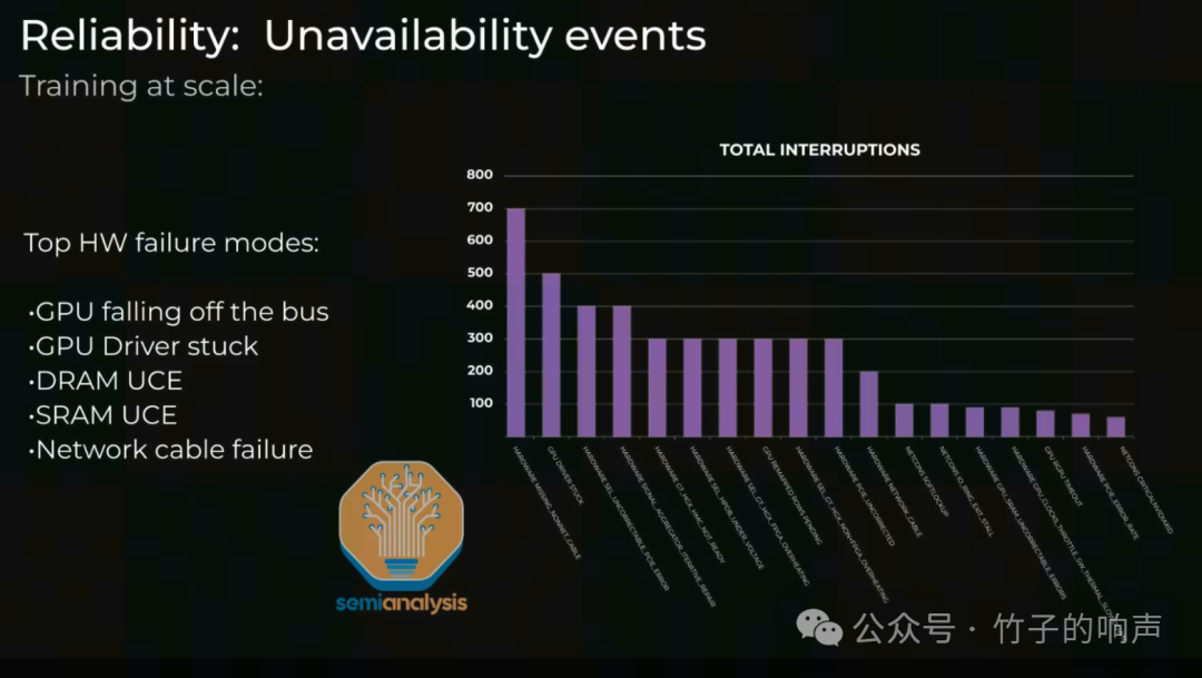 (3)可靠性与恢复同步模型训练导致巨型集群的可靠性成问题。常见问题包括GPU HBM ECC错误、GPU驱动卡死、光纤收发器故障和网卡过热等。