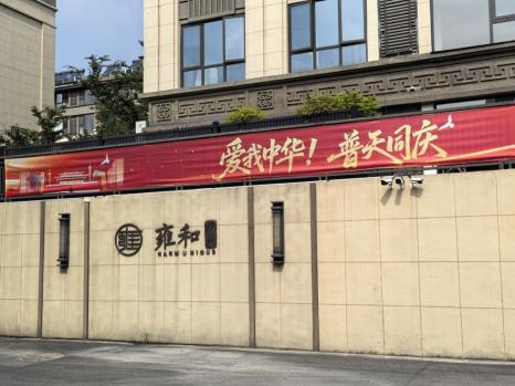 时值国庆,各社区以“中国红”为主题进行了精心装点。飘扬的国旗、喜庆的灯饰与赤诚的景观元素,点燃了业主们的爱国情怀,也让从归家路到生活处的每个角落都洋溢着庄严与喜悦共融的节日气氛。