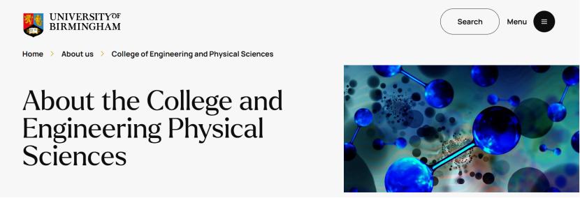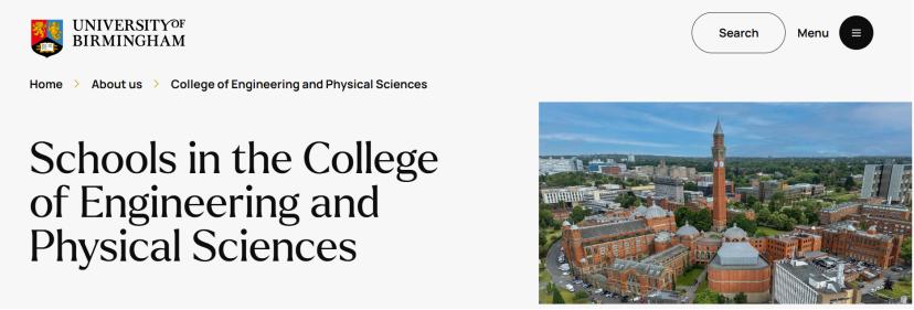 伯明翰大学的工程与物理科学学院(College of Engineering and Physical Sciences, EPS)是欧洲规模最大的同类学院之一,汇聚了化学工程、化学、计算机科学、工程学、数学、冶金与材料、物理与天文学这7个学术院系。