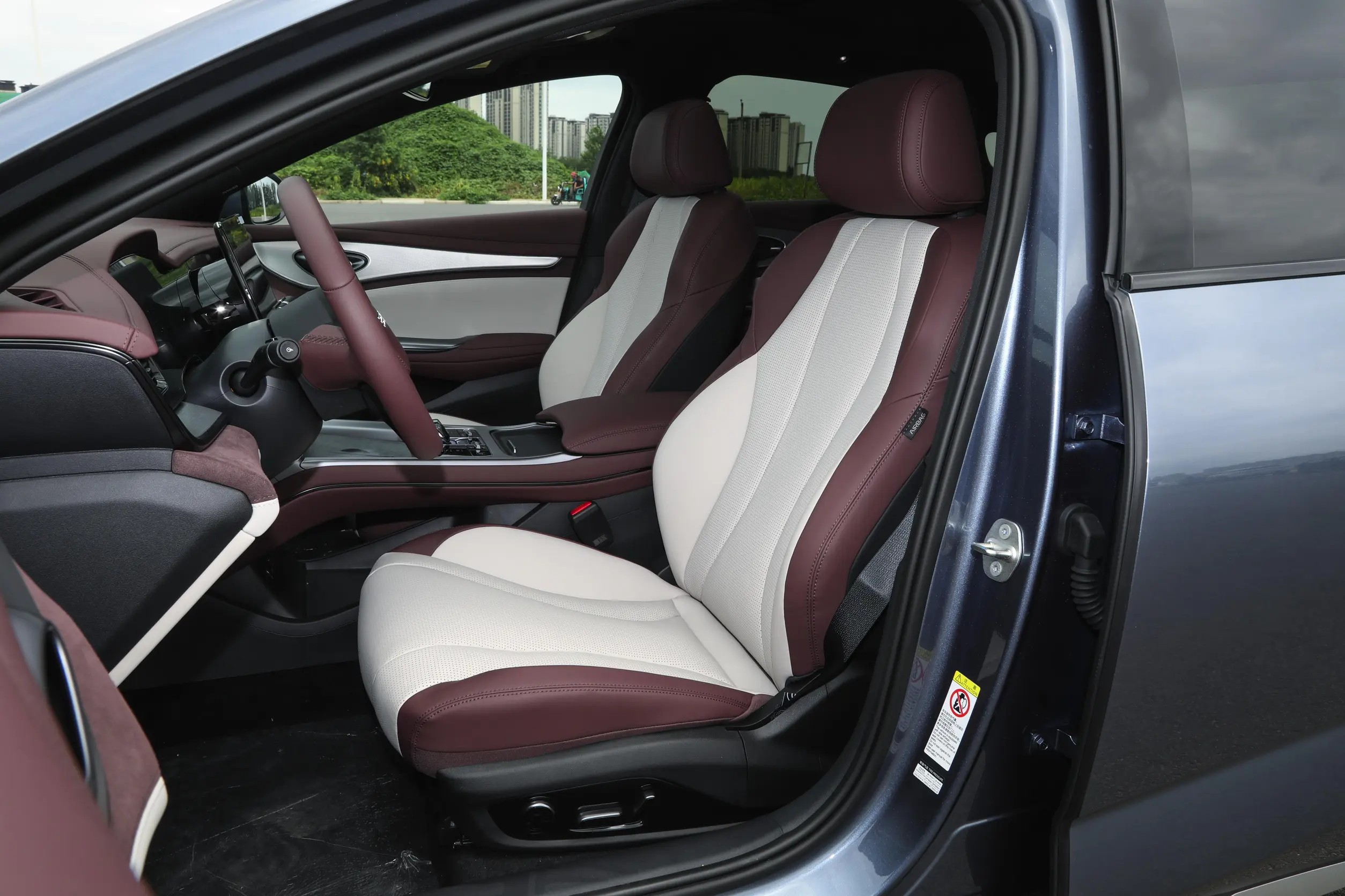 比亚迪海豹07 DM-i的长宽高分别为4980*1890*1495mm,轴距达到了2900mm,在同级别中尺寸偏大,这样的身材带来了更强的存在感和充足的车内空间,身高1.77米的体验者在前排调整好坐姿,再进入到后排,可以轻松翘起二郎腿,并排坐满3名成年人,横向空间也不会拥挤,前排主副驾驶座椅是电动调节,腰部支撑到位,长时间乘坐不易腰酸,具有座椅通风和加热功能,做到了冬暖夏凉,而且座椅设计充分考虑了人体工程学,侧翼比较长,对身体包裹感强,而后排座椅填充厚实柔软,很像是自己家的大沙发,保障了很好的乘坐舒适性。