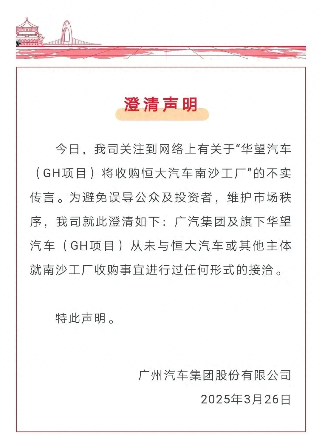 不过很快,广汽就出来辟谣了,明确表示广汽集团和旗下的华望汽车,从来没和恒大汽车谈过收购南沙工厂的事儿。