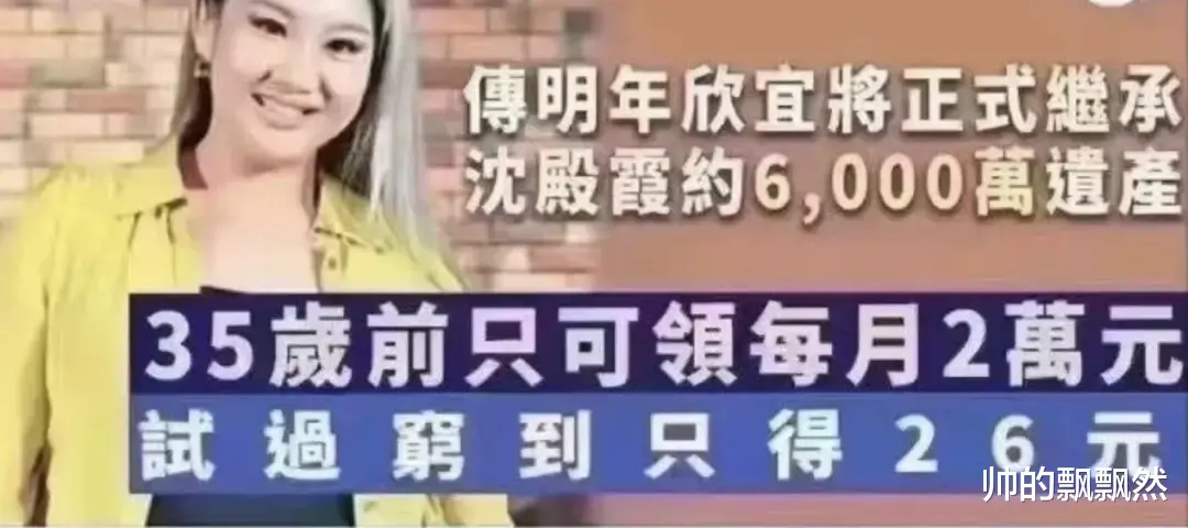 所幸的是,沈殿霞在生前似乎知道了女儿离开她的处境会不好,便将6000万港币设定为信托基金,规定郑欣宜在35岁以前,每月只能领取2万元生活费,等到了35岁后才能财富自由。