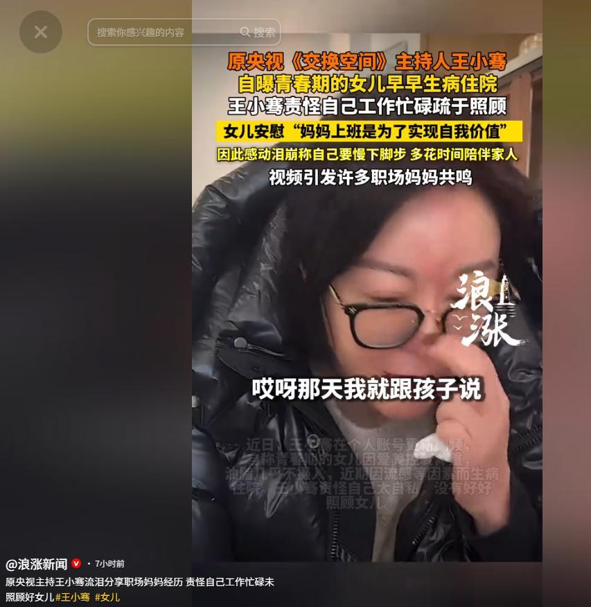 前央视主持人王小骞在社交平台发布了一段崩溃视频。