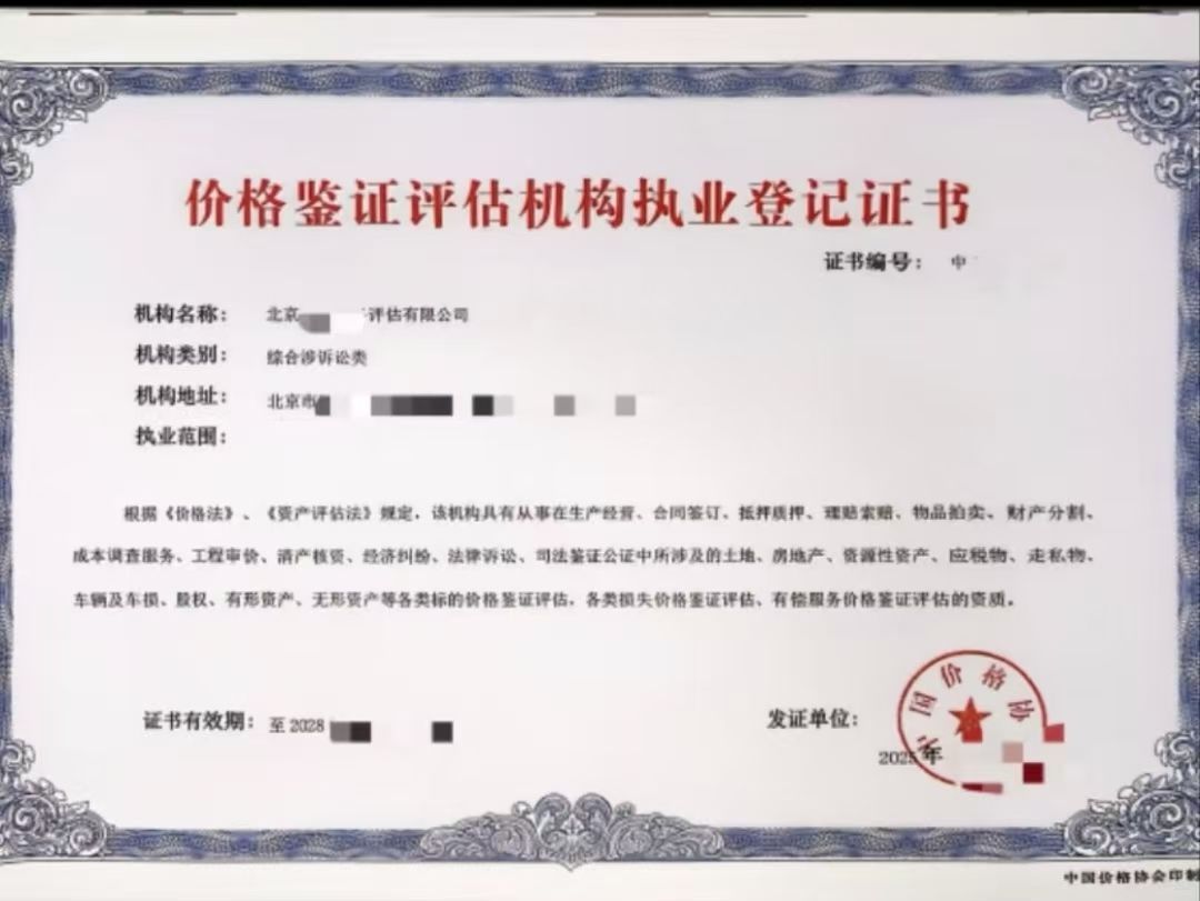 • 申请企业须具备独立法人资格,拥有有效的工商营业执照和相关税务登记证明,名称中需包含“鉴证”“评估”等相关字样,经营范围明确包含价格鉴证评估及相关业务。