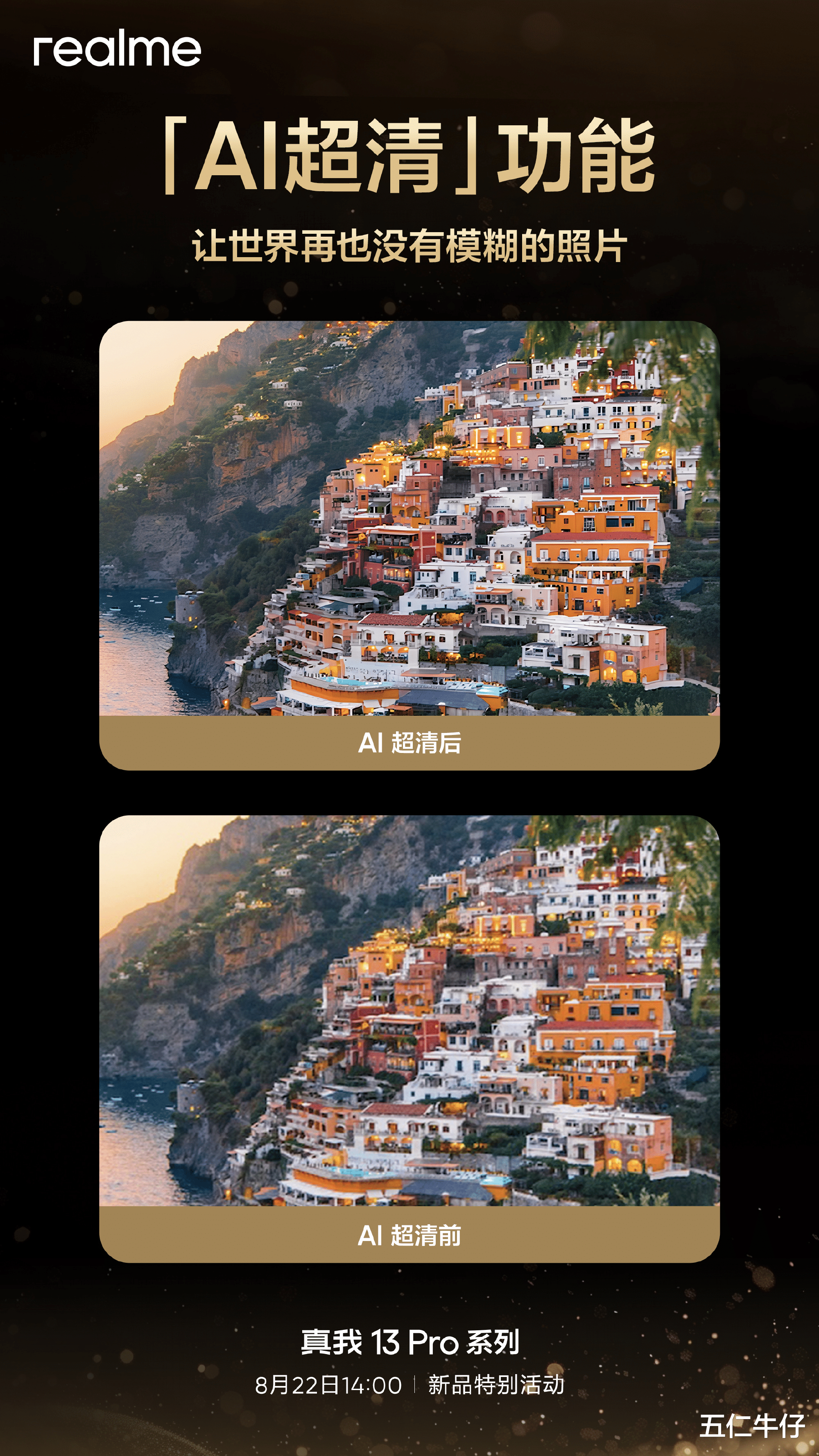 除了相机硬件给力之外,在AI技术的加持下,真我13 Pro+还新增了AI超清功能。此功能可通过AI算法对低清照片进行人工智能计算提升,重绘细节还原画面原貌,有效弥补了原相片清晰度不足,画质不够高的缺点,呈现出更美好的相片。