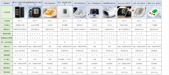 (下图展示了本次血压计测评中的部分产品)