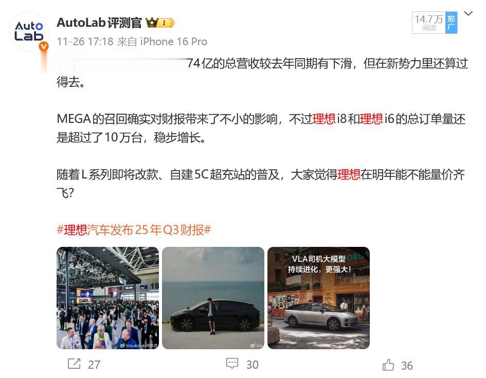 后来李想把这次失利总结为:理想错把 MEGA 的“商业验证期”错当成“高速扩张期”,公司被销量欲望绑架,牺牲了最擅长的用户价值与经营效率。