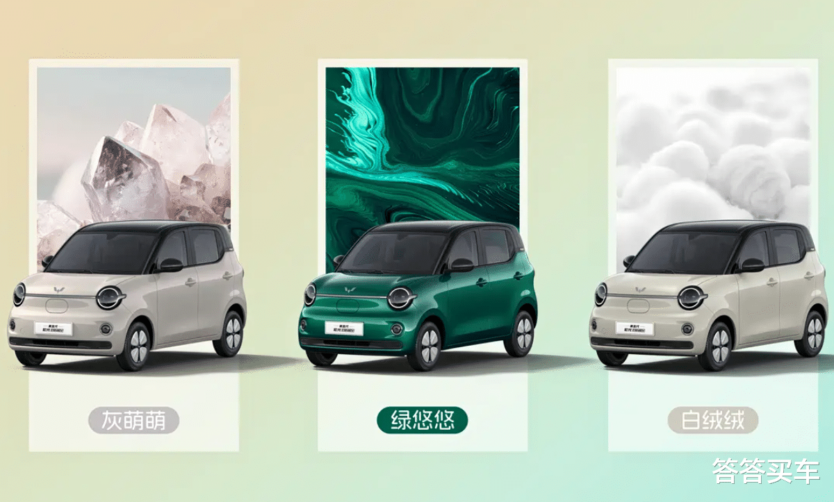 外观方面,第五代宏光MINI EV首发了绿悠悠、白绒绒、灰萌萌三款复古车色,车漆采用八层涂色工艺,独特的珠光效果在光线下流转。新车采用全新风格的前脸,封闭式格栅搭配圆形大灯组,使得Q萌风格得以延续。新车在大灯组之间配备了贯穿灯带,拉宽了车头的横向视角,充电口位于车头LOGO下方,银色的五菱车标移到机盖前端。