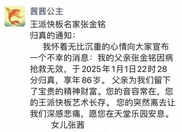 也是在昨日张金铭的女儿发布了一则信息,其中书写了父亲的离去。