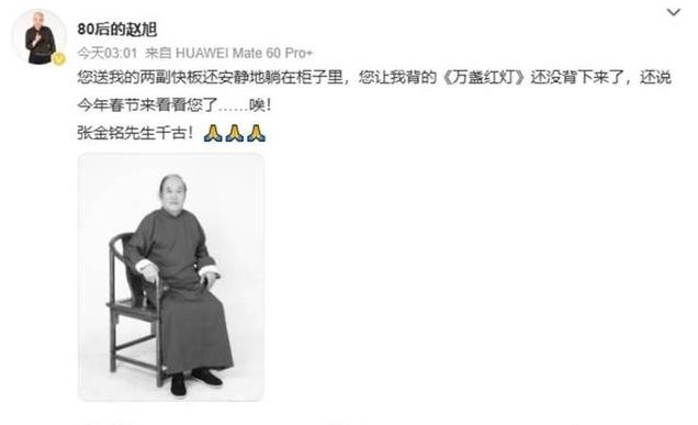 在同行业的赵旭在得知张金铭老先生去世之后更是发布动态想念他。