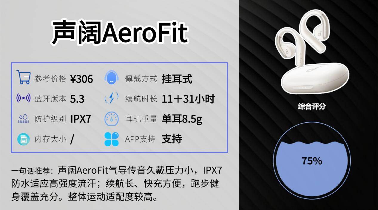 声阔(Soundcore)在耳机市场以性价比高、运动与户外耳机经验丰富著称。AeroFit定位为轻量化开放式骨传导耳机,强调舒适佩戴与全天候运动使用。