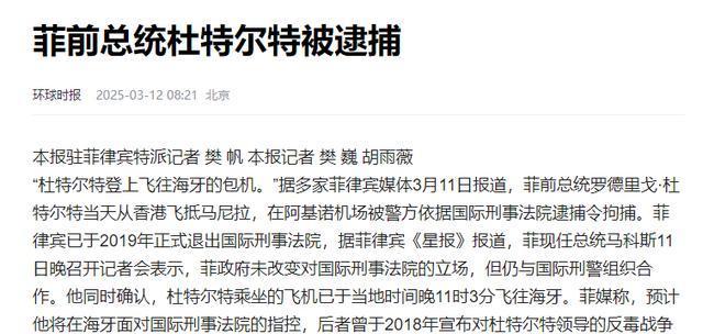 3月11日,杜特尔特在香港为女儿莎拉进行竞选宣传后,返回马尼拉。然而,飞机一降落,他立即被当地警方拘捕。这一突发事件出乎所有人的预料。