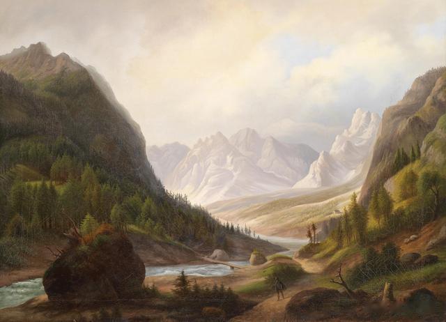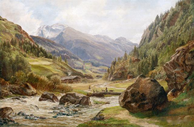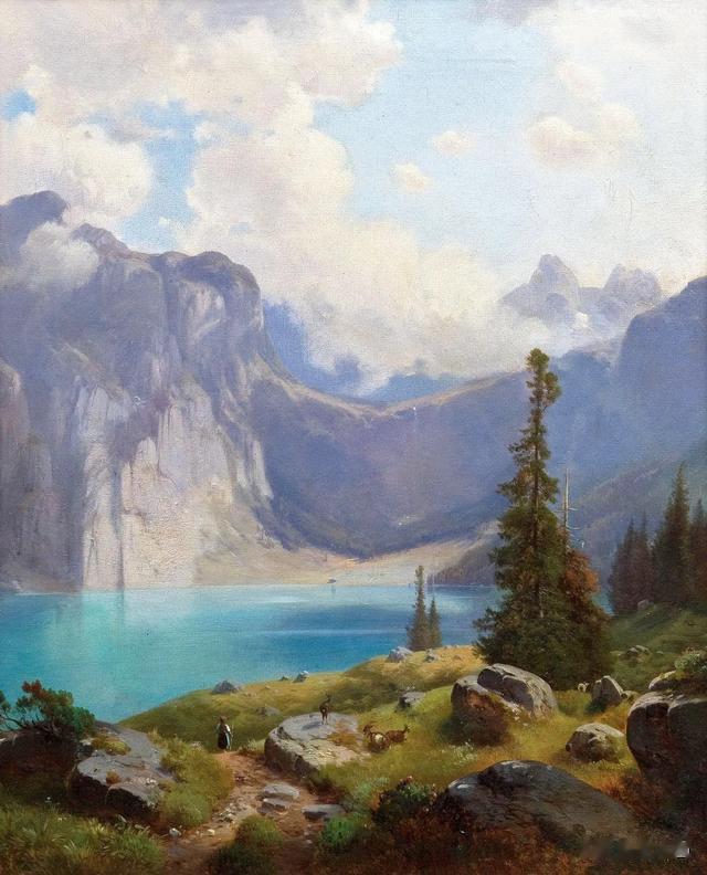 在19世纪的奥地利,当阿尔卑斯山的晨雾还未散去,安东·希弗(Anton Schiffer)已执起画笔,将山峦的轮廓与光影的私语一一捕捉。1811年,他生于这片被自然眷顾的土地,而1876年离世时,留下的不仅是画布上的风景,更是一首首无声的视觉诗篇。