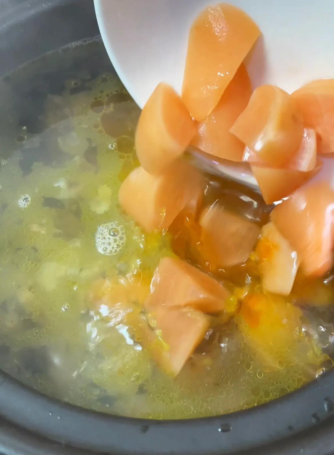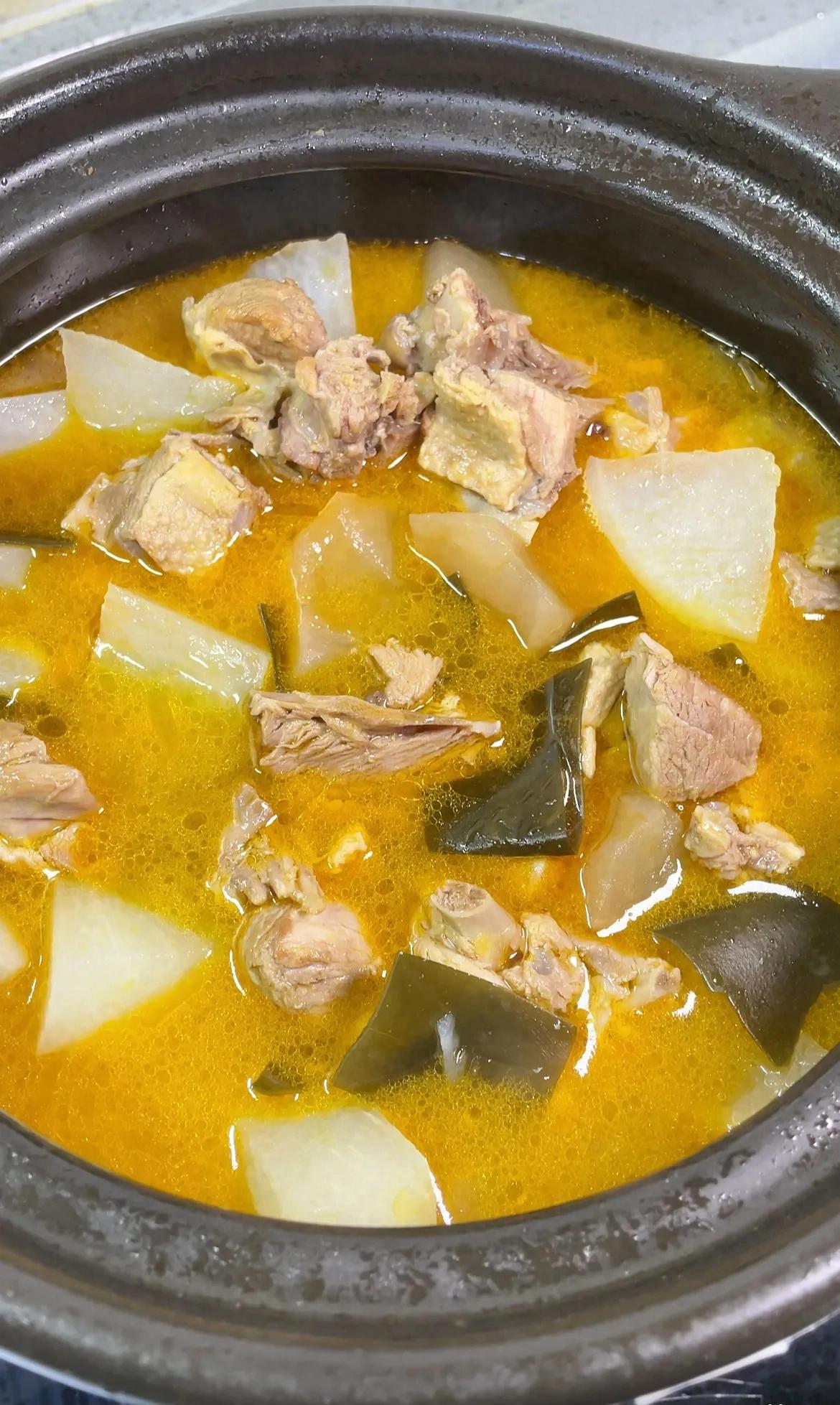 再放点白萝卜,再次煮三十分钟即可。调料包盐味很足,所以这道菜无需再加盐!