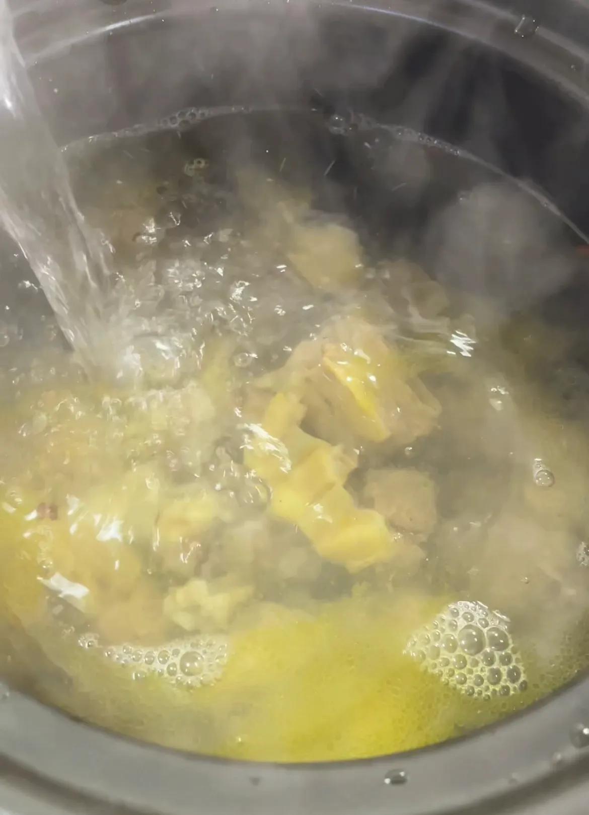 放点提前泡发好的海带,煮开后中火炖一小时。