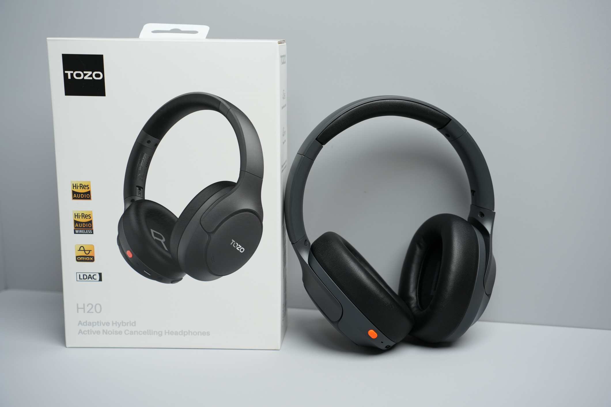 外观与佩戴感是头戴式耳机的基础,TOZO H20做得十分贴心。包装简洁高端,配件齐全,耳机本体采用仿蛋白皮耳罩,内部填充慢回弹记忆海绵,触感柔软亲肤,贴合耳廓却不压迫,长时间佩戴也不会有闷耳、压耳感。