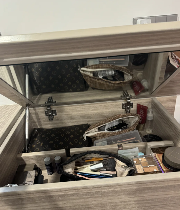 但事实上,真心不建议你入手翻盖的化妆桌,真的是非常的鸡肋,放在家中真心没用。