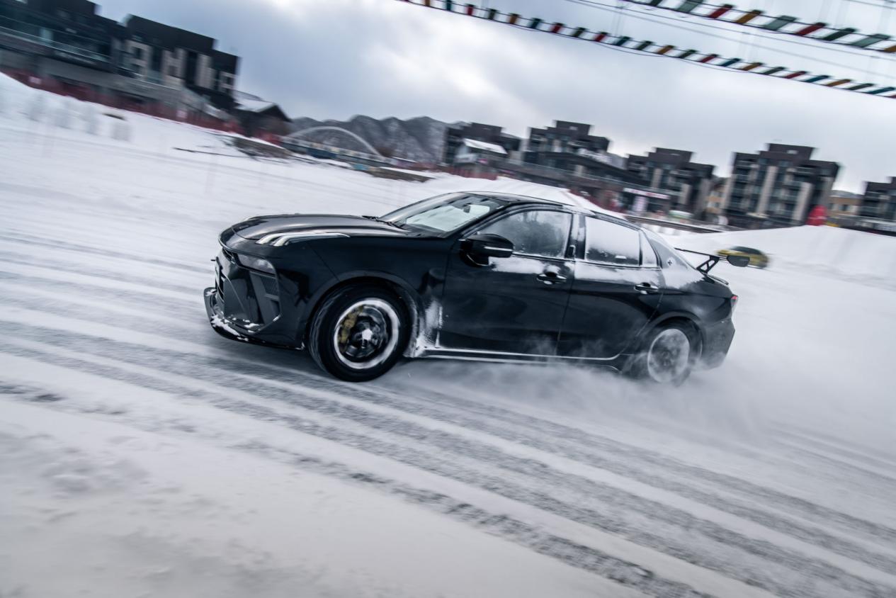 除全场景的深度融入,领克03家族在雪场呈现的冰雪漂移展示,更加直观地展现了其“冬日战神”的强悍实力。新领克03+性能进阶版配置2.0TDT6双增压发动机,具备309Ps最大马力与420N·m峰值扭矩,百公里加速只需5.41秒,即使在低温环境中动力响应仍然迅速敏捷。其配备的第六代博格华纳智能四驱系统,可智能分配50:50黄金扭矩,极大提升冰雪路面抓地力,让漂移动作精确可控。新领克03+Racing则在此基础上升级,不仅承袭强劲的动力输出与四驱配置,更搭载十段可调的Bilstein高性能减震器,能根据雪地路况实时调校,配合优化空气动力学的碳纤维宽体套件,高速行驶时车身稳定性明显增强,成为冰雪路面的操控典范。