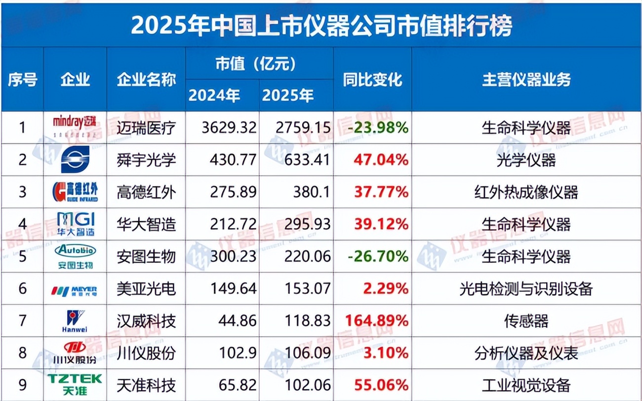 根据最新统计数据,国内仪器行业42家上市公司总市值达6265亿元,但是哪怕将这42家企业的市值相加,仍与国际 Top1 赛默飞的市值,有着4674亿人民币的差距。