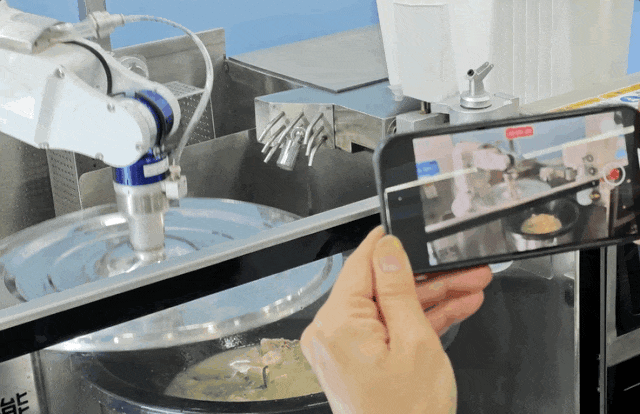 但是,这个炒菜机就像有经验的师傅,机械臂把锅铲的力度和角度控制得恰到好处:铲尖贴着锅底轻轻推动,既让汤汁均匀裹满鱼块,又避开了易碎的豆腐,完全没有传统炒菜机的“胡搅蛮缠”。
