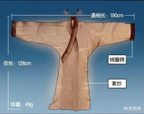 两件襌衣,一为直裾(衣长128厘米,重49克),一为曲裾(衣长160厘米,重48克),采用平纹织法,经纬线密度稀疏(经线每厘米58根,纬线每厘米40根),形成均匀的方孔结构,透光率高达75%。若除去领口与袖口的镶边,仅重25克,折叠后小到可以藏于火柴盒中。