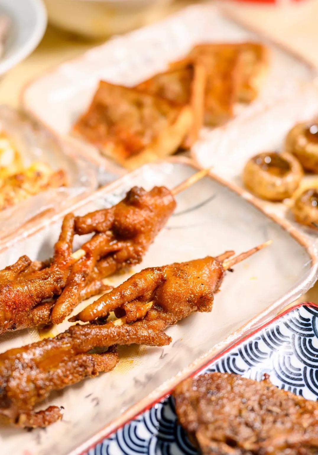 宵夜摊上的烤鸡爪经过卤制,口感焦脆柔嫩,吃起来根本停不下来。