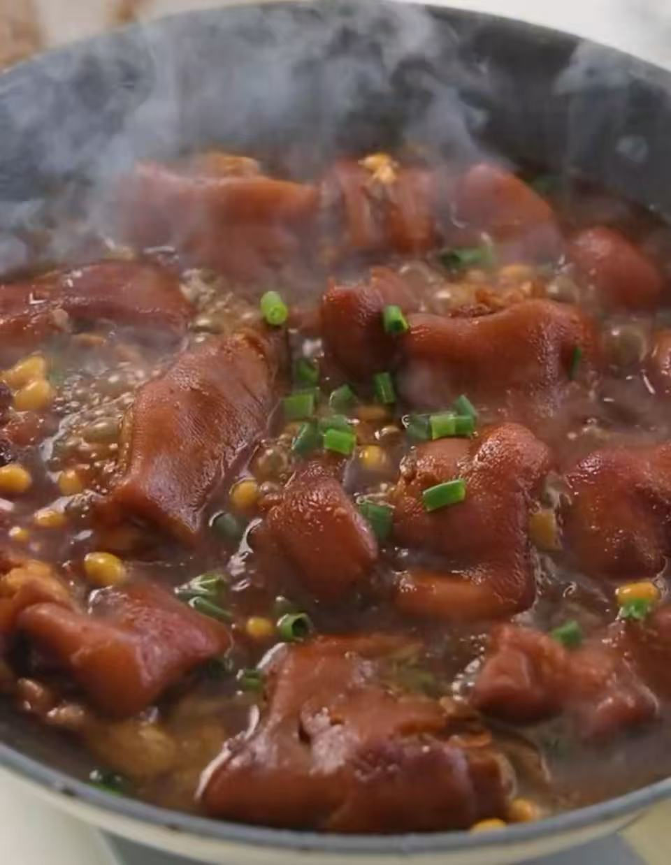 - 焖煮过程中尽量使用小火,让猪脚和黄豆慢慢吸收调料的味道,并且中途加水一定要加热水。