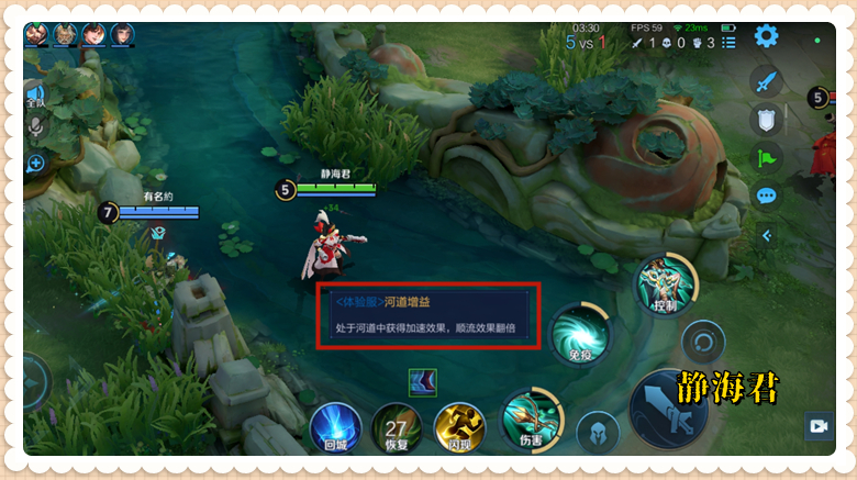 加速增益:英雄在进入河道区域后,将获得加速效果,过线、赶路更快。