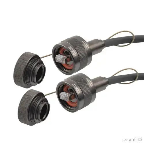 L-com IP68加固型6类线缆,插头/插头,化学镀镍饰面,24AWG多股,CM/CMX阻燃等级FR-TPE护套,黑,带防尘帽