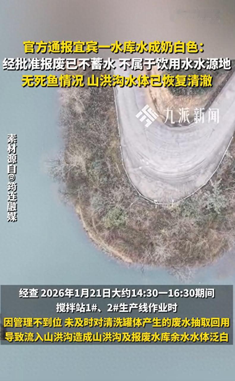 经查,2026年1月21日大约14:30—16:30期间,搅拌站1#、2#生产线作业时,因管理不到位,未及时对清洗罐体产生的废水抽取回用,导致流入山洪沟造成山洪沟及报废水库余水水体泛白。