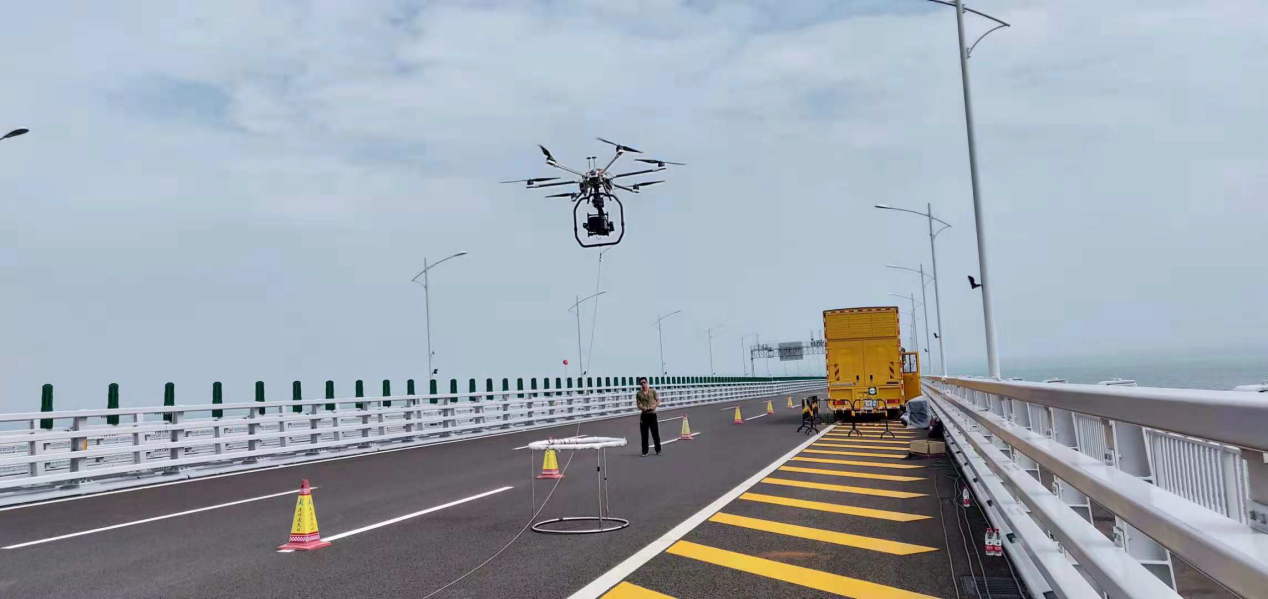 港珠澳大桥开通仪式当天,央视的直播画面中出现了一个独特的“高空机位”。这个位于百米高空的视角,将大桥全线通车的壮丽景象尽收眼底,而这背后正是大工科技系留无人机系统的精准支撑。