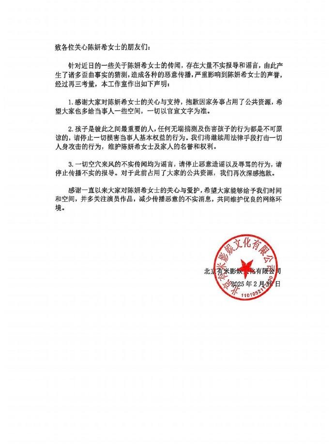 消息一出,吃瓜群众们炸开了锅。各种小道消息满天飞,有人说陈妍希这边怎样怎样,也有人说陈晓那边如何如何…… 不过,后来陈妍希出来澄清了,说那些传闻影响到她生活了,希望大家别再瞎传了,一切以官方声明为准! 这说明啥?这说明,事情没那么简单!