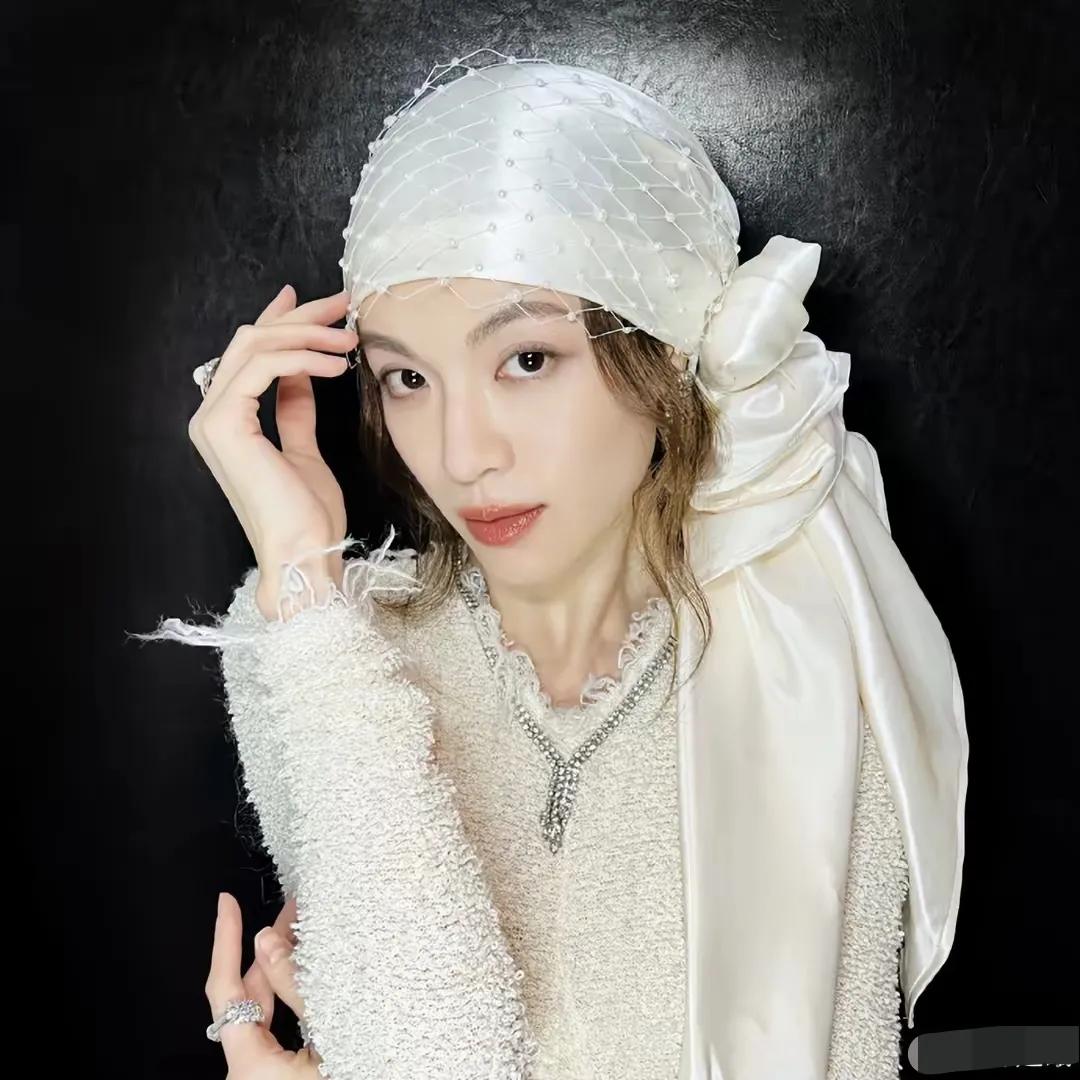 钟楚曦穿了一身白,头戴网纱丝绸帽的样子,贵气又有异域风情,她对造型很有理解,摆pose时,怎么显贵怎么来。