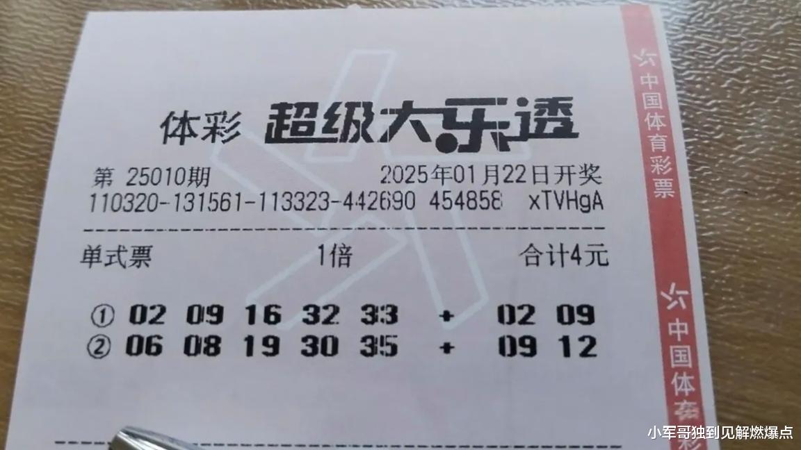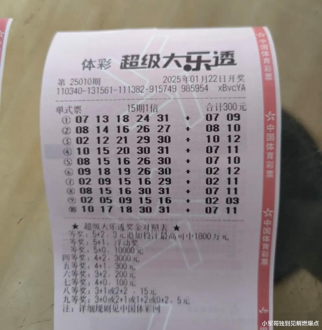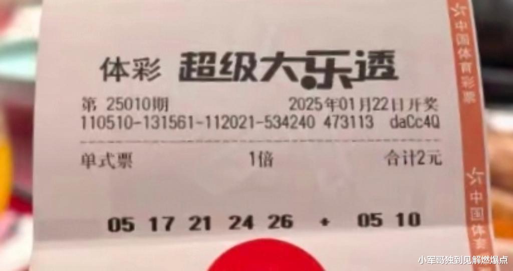 在冬日暖阳的照耀下,1月22日,大乐透25010期的开奖日悄然来临。彩民们怀揣着各式各样的梦想,涌向那充满希望的购票窗口。其中,一位神秘彩民的晒票犹如一颗璀璨的明星,瞬间吸引了所有人的目光——一注号码,单挑79倍,野心勃勃,仿佛要向着清空奖池的壮举发起冲锋。