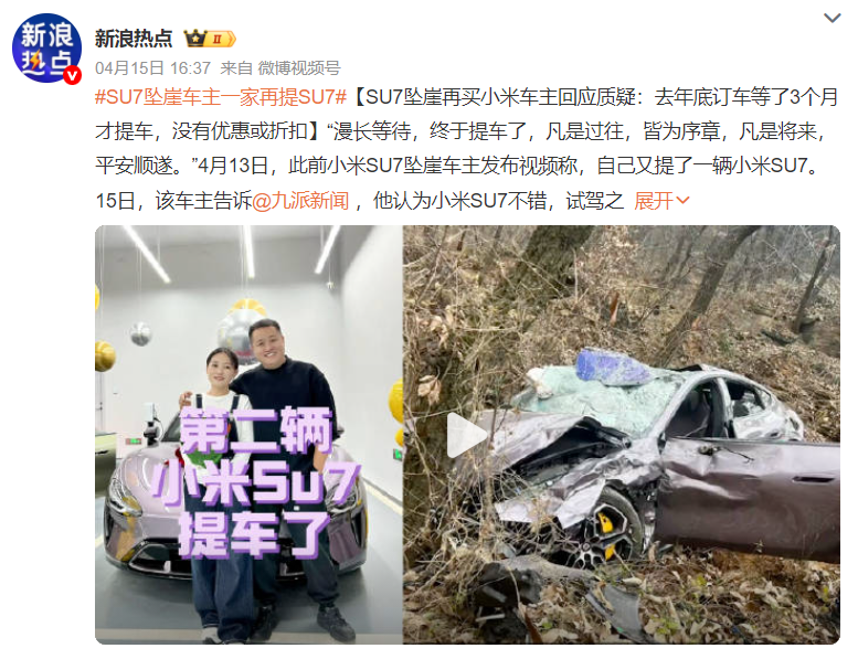 出了这么惊险的事,这位车主不但没对小米汽车失望,还专门跑去参观了小米汽车工厂,转头就又买了一辆霞光紫 SU7 MAX。他还公开表示,以后会继续支持小米。这剧情反转,真是让人没想到。