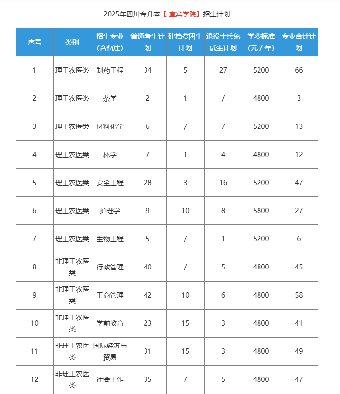 宜宾学院2025专升本共有21个专业招生,招生计划600人,学费在 4800-10000 元/年之间。