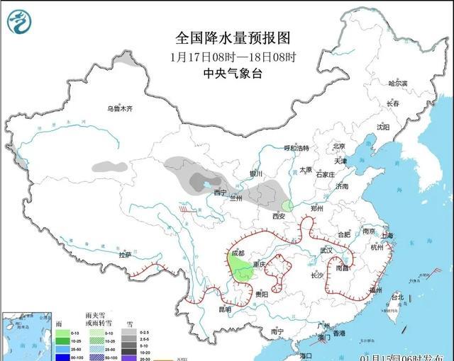 根据央视气象信息显示,1月17号是四九的第1天,全国出现了大范围的晴朗天气,降雨雪的地方非常的少,仅仅在甘肃、青海北部、陕西中部、四川东部等区域或者有降雨降雪,而且都是小雨或者小到中雪,甚至还有冷雨。