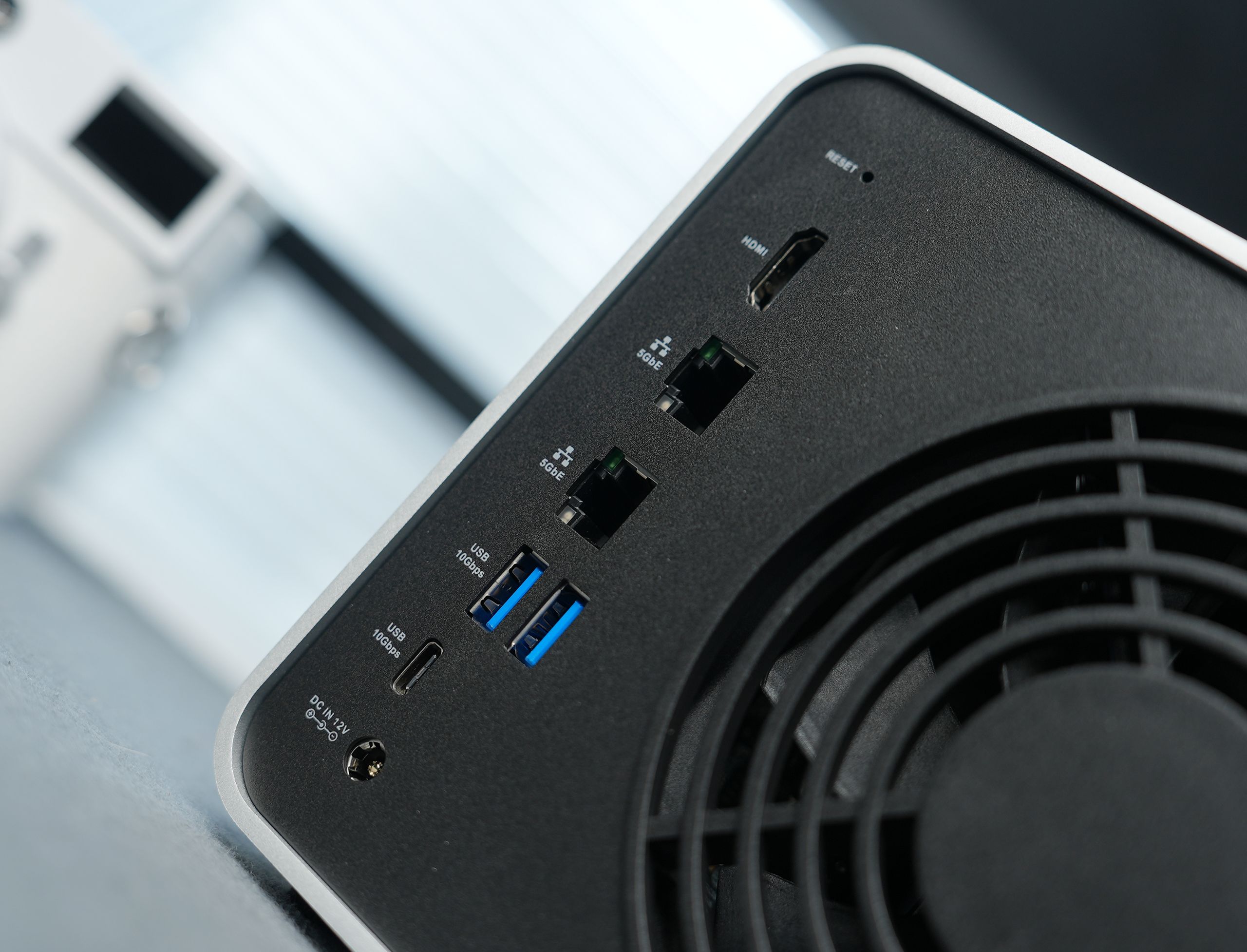 目前市面上的NAS产品多为2.5G或者双2.5G网口,而铁威马F4-425 Plus采用了双5G网口,可大幅度提高数据传输速度,支持多种Bond聚合模式,配合SMB multichannel,线性写速度高达1010MB/s,对于10GB的视频文件,最快只需10秒就能传输完成。除此之外,还给到2个USB 3.2 Gen 2 (10Gbps)接口、1个Type-C( 10Gbps)接口和1个HDMI接口,扩展能力相当丰富。