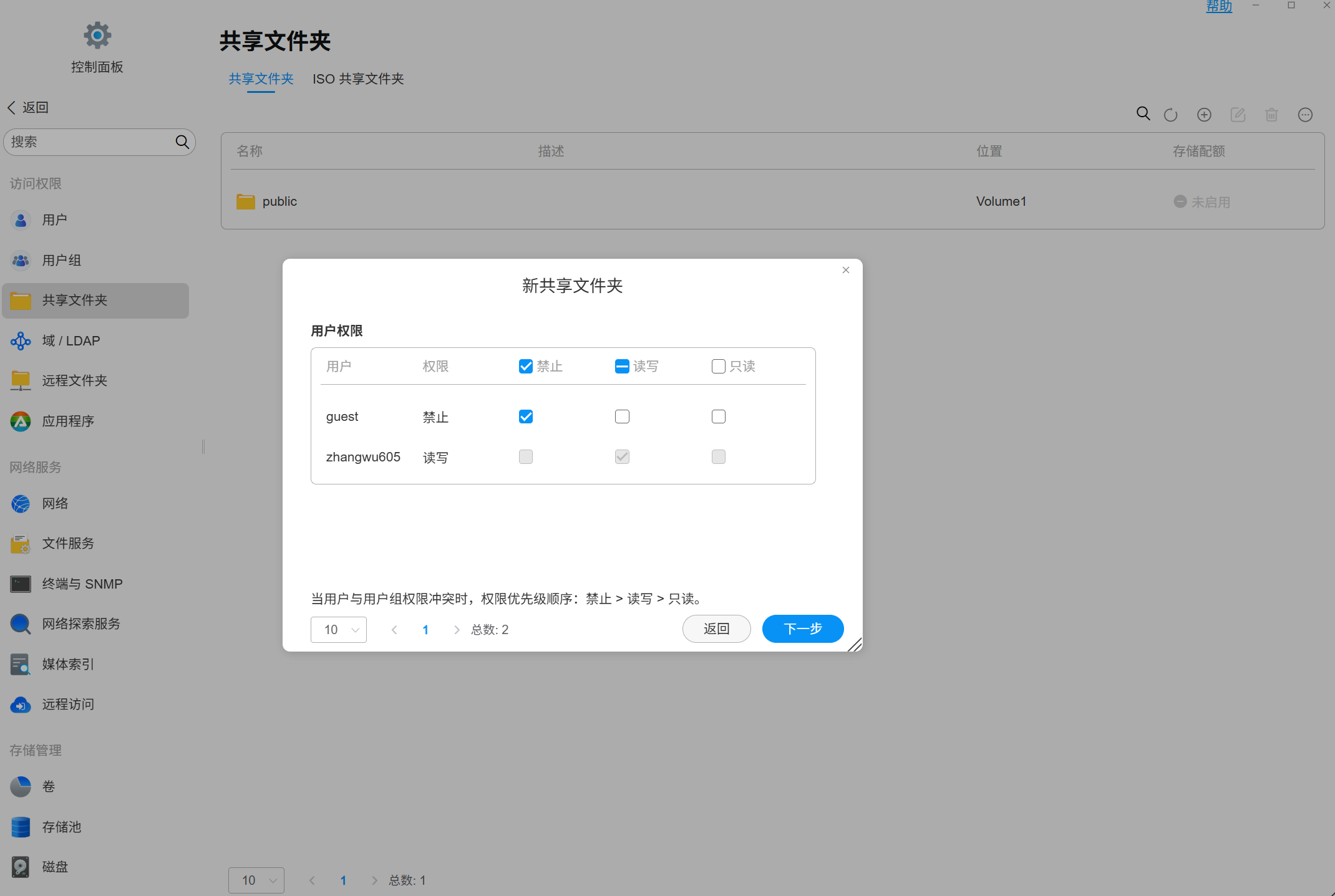 像我通过铁威马F4 - 425 Plus,可以对工作室的同事,进行行为管理,每个人设置了登陆的账号和密码,并根据岗位和职责设置好访问的权限,方便日常工作的管理。