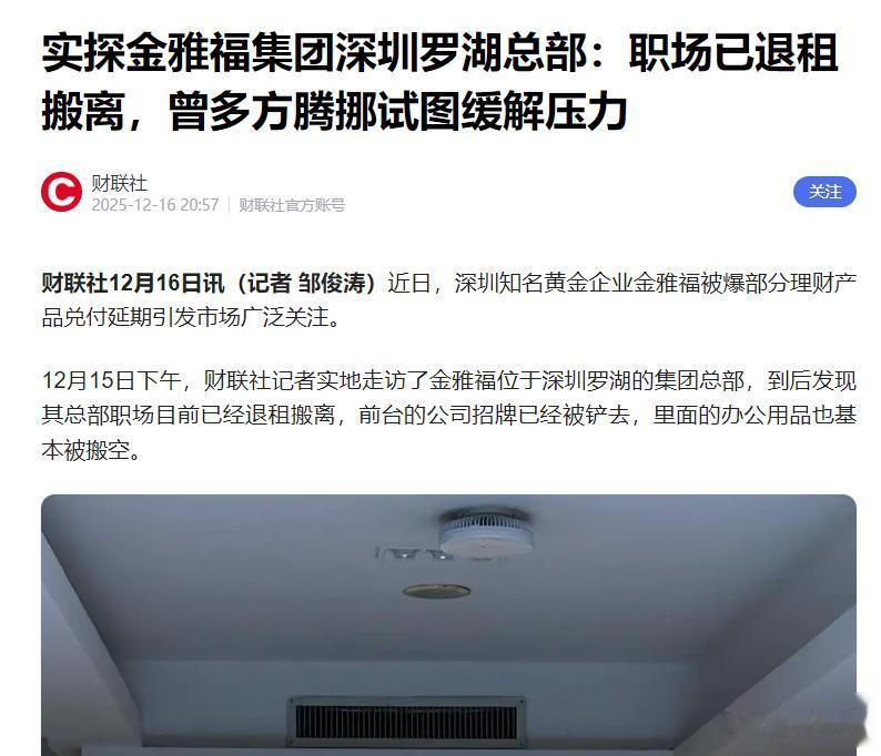 信息来源:实探金雅福集团深圳罗湖总部:职场已退租搬离,曾多方腾挪试图缓解压力