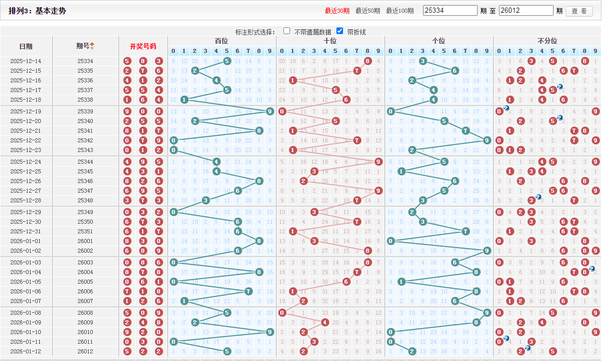 百位大小4:2、奇偶4:2,冷热号兼顾;十位大小3:3、奇偶2:4,适配偶数走热趋势;个位大小3:3、奇偶3:3,贴合奇偶均衡走向。