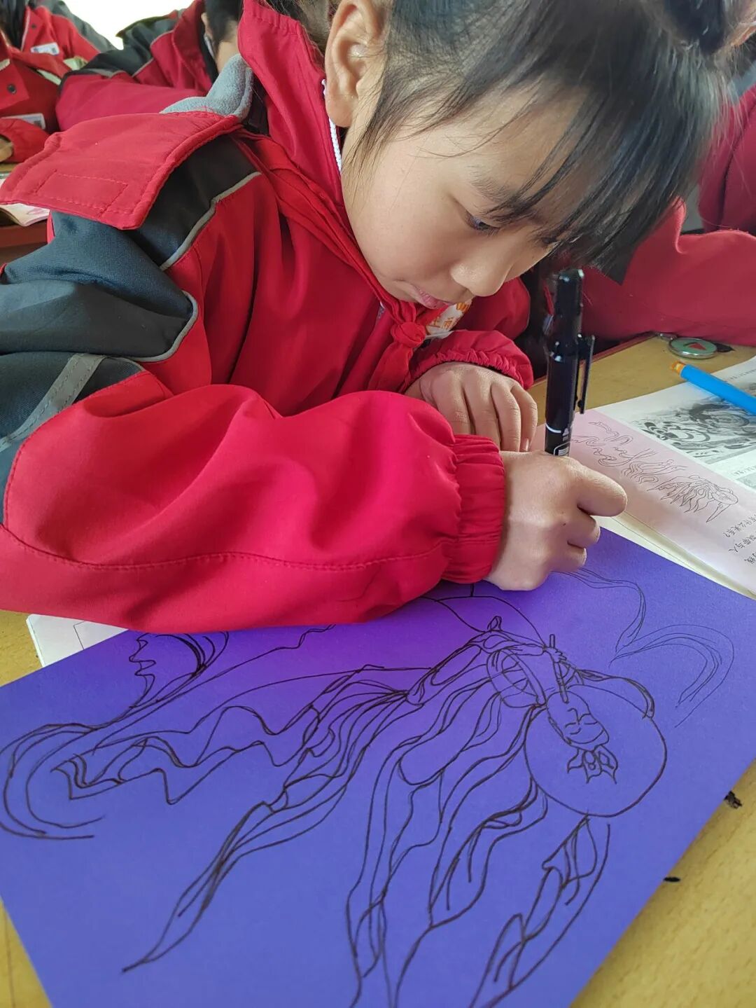 在美术教室里,学生们正通过多媒体电子屏仔细观察敦煌飞天的高清影像。“以前只在书本上见过飞天,现在放大百倍后,连衣袂飘动的纹路、飘带转折的角度都清清楚楚。”四年级学生吴夏沫兴奋地说。