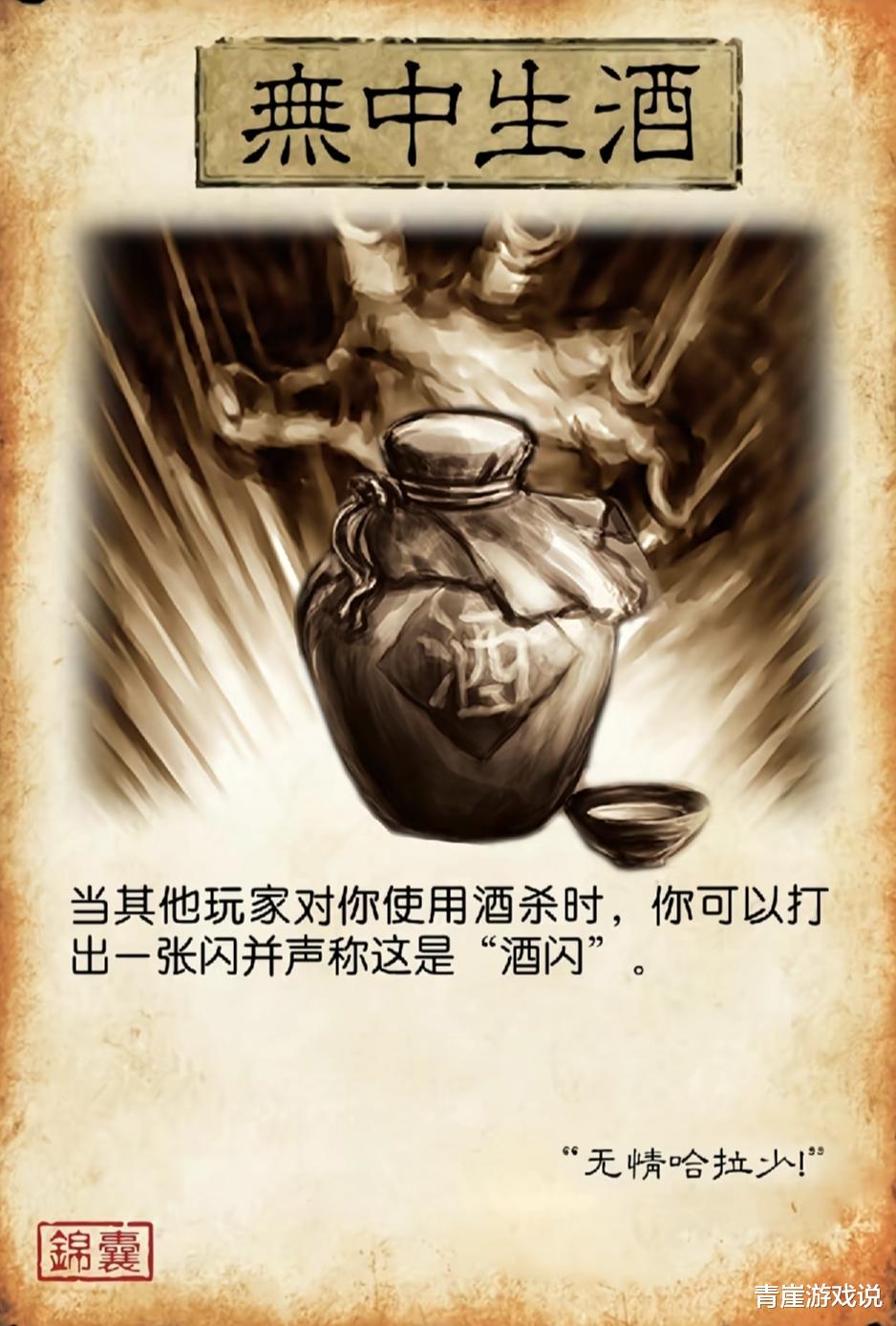 除了可以口头震慑将普通杀吹嘘成酒杀,在被酒杀时也能进行酒闪,此时对方造成伤害都希望破灭,这句酒闪,一下就能将对方本来激昂的拉回谷底!