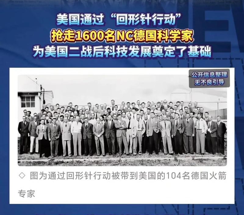 二战刚结束,美国就疯了似的从德国捞走1600多个顶级科学家,搞出登月计划的冯·布劳恩就是这么来的。