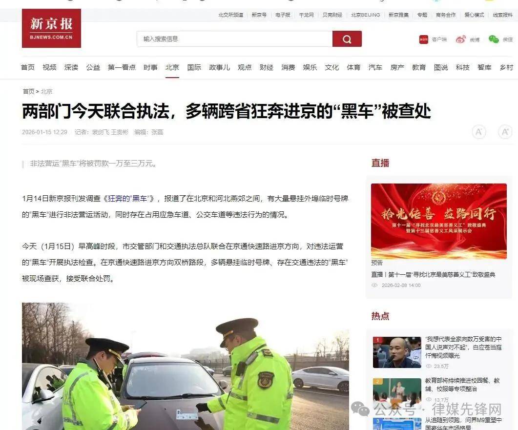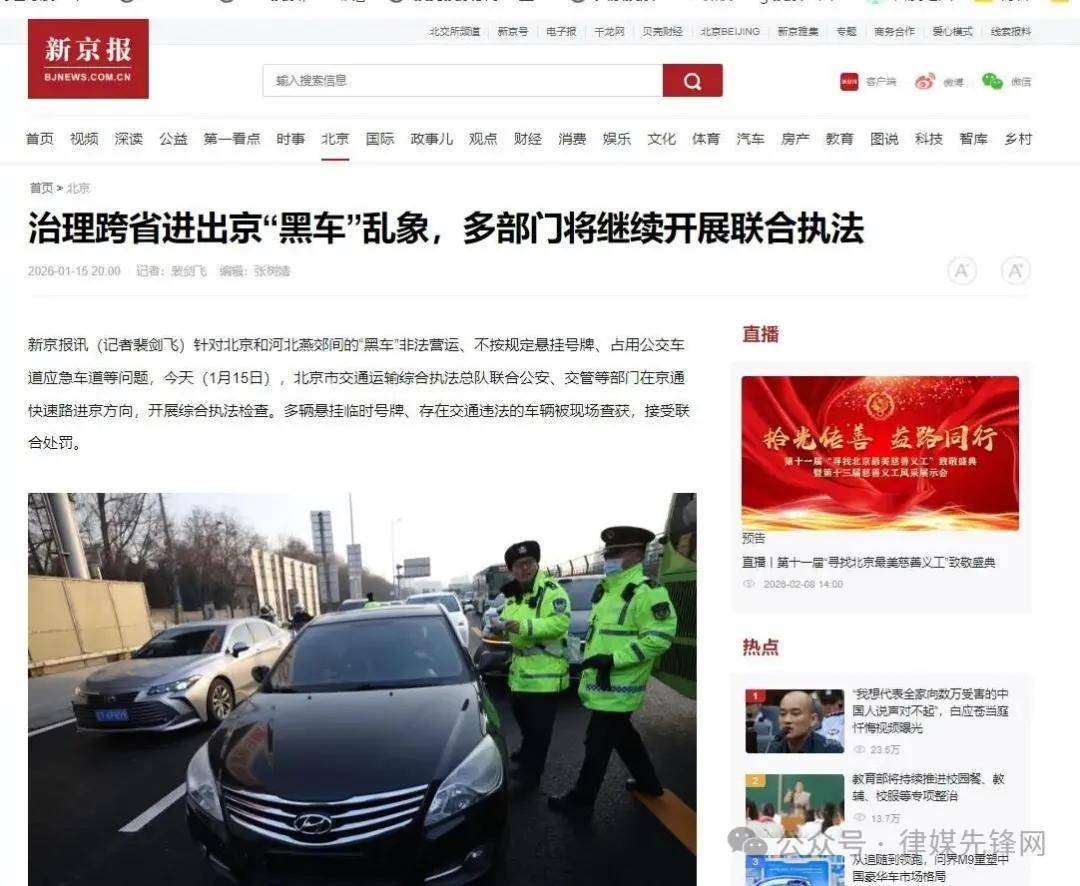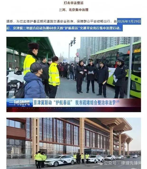 事实应是,新京报道放风,各主流媒体同时跟进,完成舆论铺垫,得到民意支持后,才从2026年1月29日起,正式由京津冀三地联合,启动为期60余天的“护航春运”交通平安出行集中治理行动。