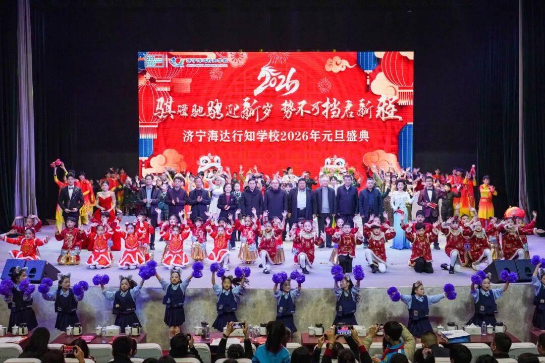 12月30日晚,济宁海达行知学校演艺中心华灯璀璨、笑语盈堂,2026年“骐骥驰骋迎新岁 势不可挡启新程”元旦盛典在此热烈举行。学校师生、家长代表与社会各界嘉宾欢聚一堂,共同见证了一场融合传统文化、青春活力与时代精神的视听盛宴。