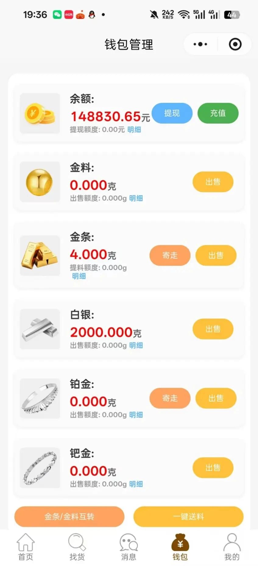 更值得警惕的是,杰我睿先后上线了 “杰我睿珠宝”“龙冶金”“金城金世界” 三个小程序,看似独立运营,实则账户余额和贵金属存货可自由划转。这种打通式的操作,看似方便用户,实则让平台能随意调配资金与货物,进一步放大了风险漏洞。