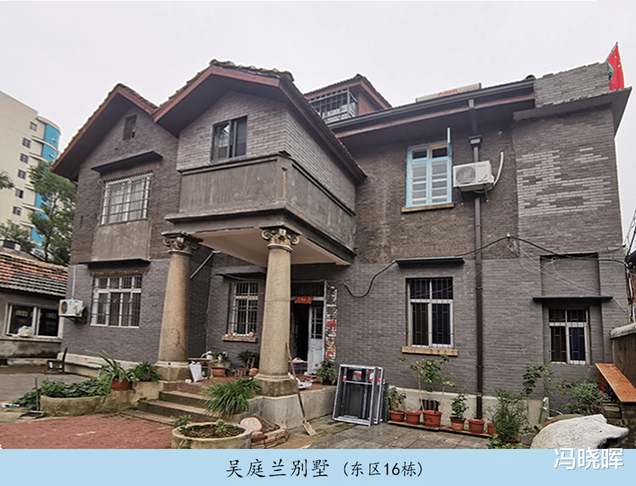 又如大院内东区 16 栋,该建筑建于上世纪二、三十年代,大门前有两根粗大的爱奥尼克式石柱,是栋典型的中西合璧建筑。初始为民国时九江县长所住,解放后为九江专署副专员吴庭兰居住,亦是市级文物保护单位。