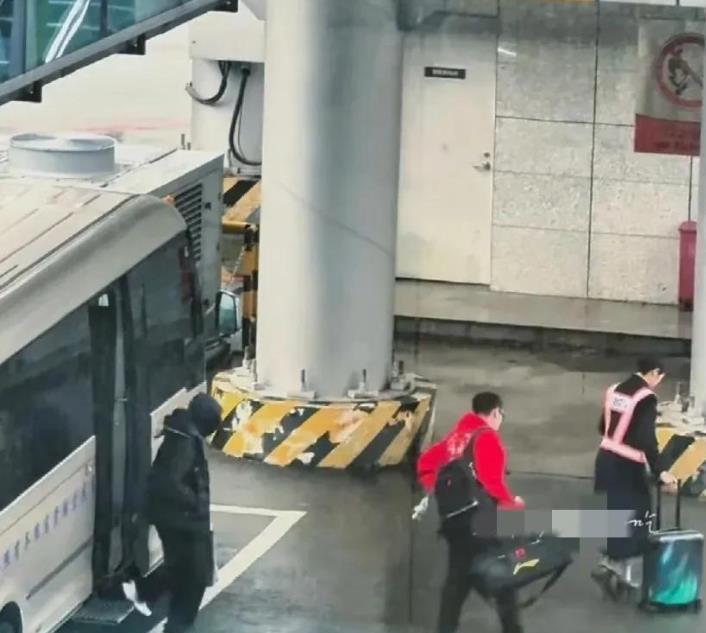 重庆的清晨下着小雨,天色还未完全亮起,王楚钦的身影出现在了机场。